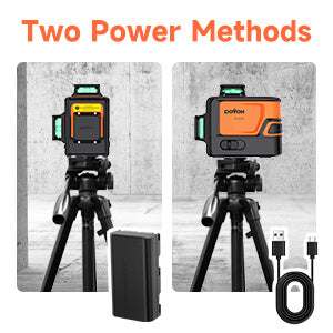【Dual High Capacity Batteries】 DOVOH 360 laser level green includes two 2600mAh lithium batteries. The laser level can charge the battery directly within the device. In addition to using the battery, the laser level can also be powered by a USB cable.