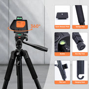 【Tripod Included】The DIY laser level kit comes with a dedicated tripod to provide a rock-solid foundation, guaranteeing accurate laser lines from any height. The tripod supports loads up to 3kg and extends to a full 60.2-inch height for versatile, stable use.